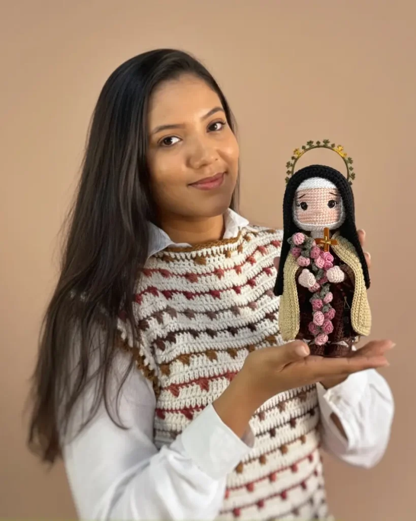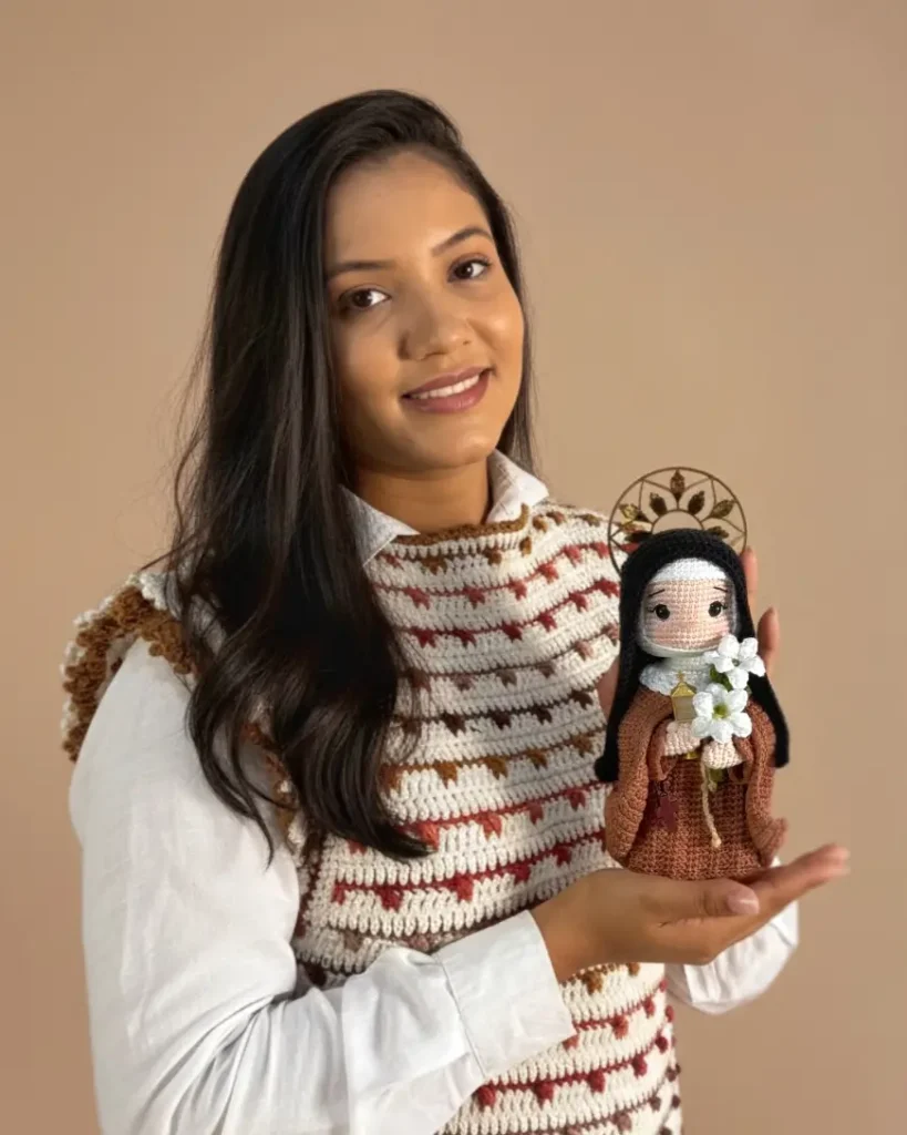 No dia 15/12, eu vou abrir as inscrições para a Segunda Turma do Alma de Algodão, onde você vai aprender a crochetar quatro santinhas maravilhosas: Santa Rita, Santa Teresinha, Santa Clara e Santa Cecília!