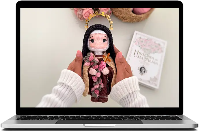 Símbolo de pureza e simplicidade, Santa Teresinha ensina a amar nas pequenas coisas. Sua santinha reflete doçura, leveza e o florescer da alma através do amor.